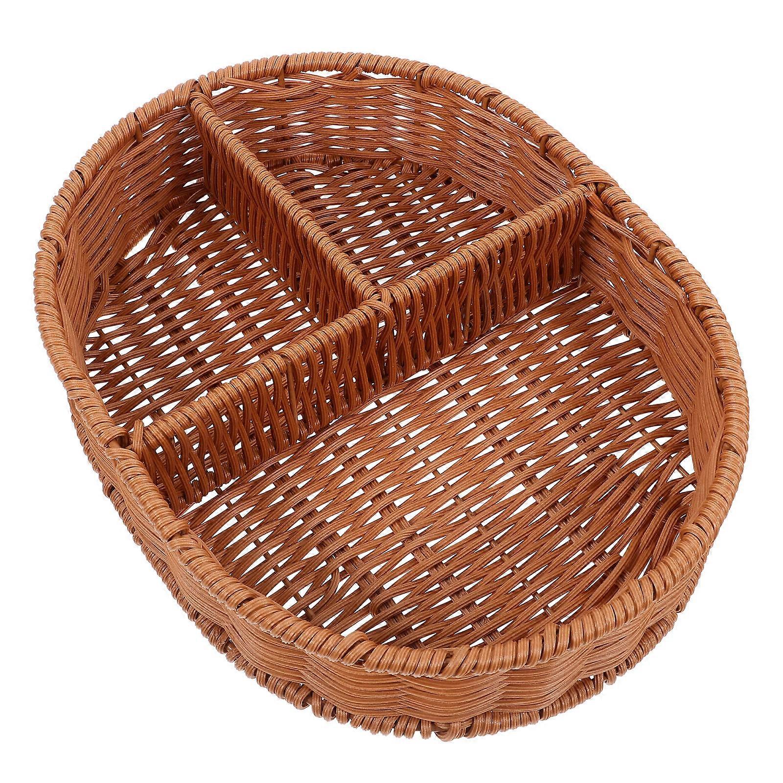 Woven Fruit Basket For Home Use Brown Oval Decorative Serving Storage 3Pcs