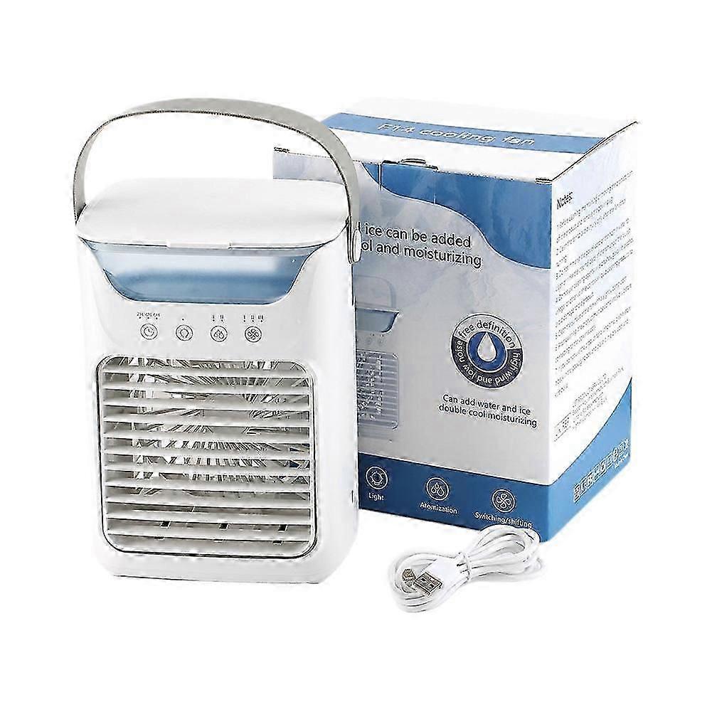 Specification:Material: Plastic + Brushed MotorSize: 211x165x122mm/8.31x6.5x4.8inchPower Supply: UsbWater Tank Capacity:700mlInput Voltage (V):5v/2aMaximum Power (W): 7wWorking Current (Ma): (Voltage 5v)Rgb Color Lights: 60maDescriptionCooling Efficiency: This portable conditioner with a 4-inch six-blades fan delivers a maximum airflow of 4.0M/S, providing a refreshing breeze to beat the summer heat effortlessly.Large Water Tank: Equipped with a 700ML water tank, our mini cooling fan offers up to 10 hours of continuous cooling without the need for frequent refills, making it a convenient and low-maintenance choice for any desktop setting.Customizable Comfort: With three adjustable wind speeds, directional airflow control, and two misting settings, this small cooler allows for personalized climate control to match your individual comfort level.Easy Maintenance: Featuring a large opening for hassle-free cleaning, this personal conditioner allows for easy water and ice refilling. It's designed with a silicone-sealed water tank lid to prevent leaks and a drip tray for clean usage.Stylish & Portable: The electric spray fan boasts a touch-sensitive four-button interface with ambient multicolor LED lighte, and a high-quality PU leather handle for a premium feel and easy portability around your home or office.Package1*Mini USB Portable Fan