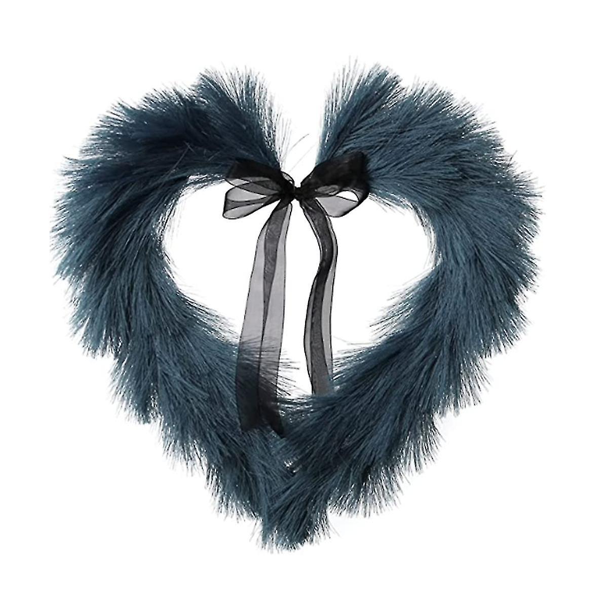 Faux Pampas Wreath,16.14 Inch Heart-shaped Autumn Door Wall Ornament, Christmas Artificial Wreath F