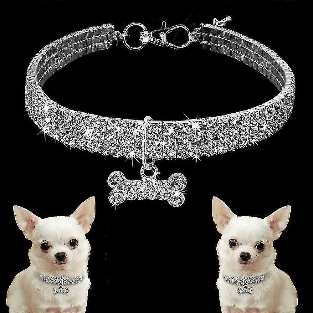 Puppy Dog Bling Rhinestone Choker Collar Pet Glitter Bone Shape Pendant Necklace Harness