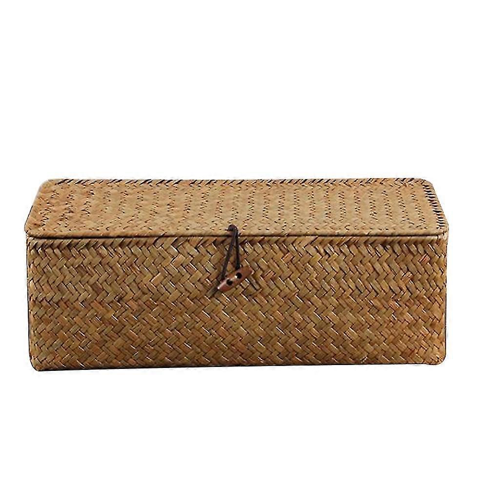 Wicker Basket Lid Wicker Cosmetics Storage Basket Straw Woven Storage Bins Divided Seagrass Storage Box 3 Compartment Basket