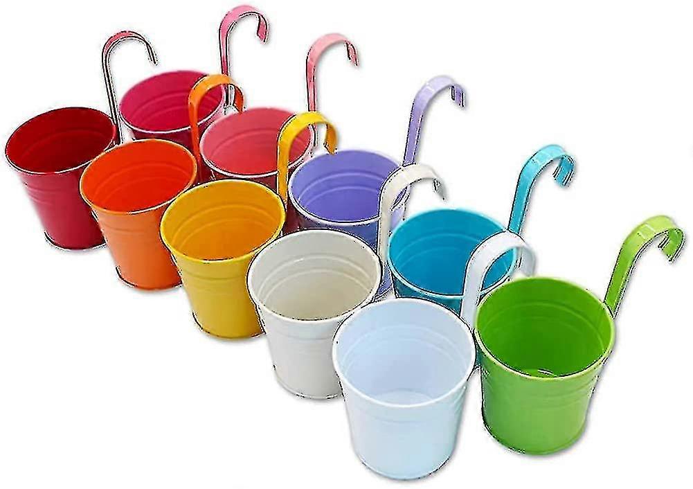 Hanging Plant Pots Metal Flower Pots. Colourful Fence Plant Pots Hanging Planter
