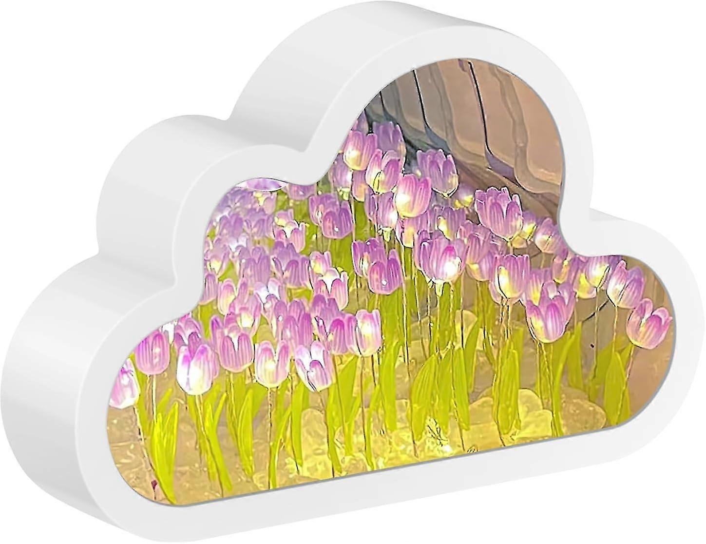 Clouds Tulips Lamp Clouds Tulips Mirror Flowers Sea Night Light 2 In 1 Clouds Mirror With Tulips Light And 20 Tulips For Home Decor, Birthday Gifts