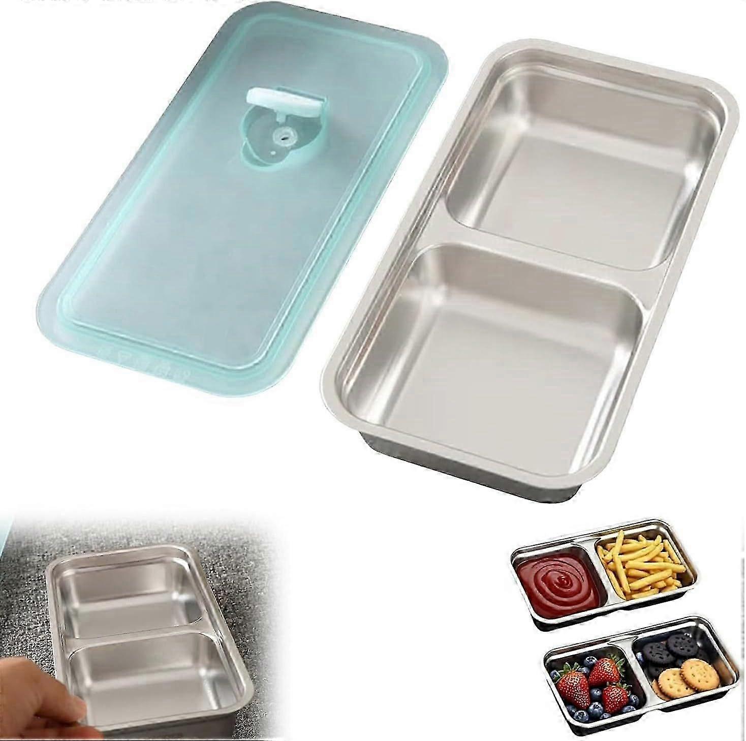 Grab and Go Snack Containers Reusable, Stainless Steel Double Compartment Snack Containers, Reusable Condiment Container with Lids, Suitable for Trave