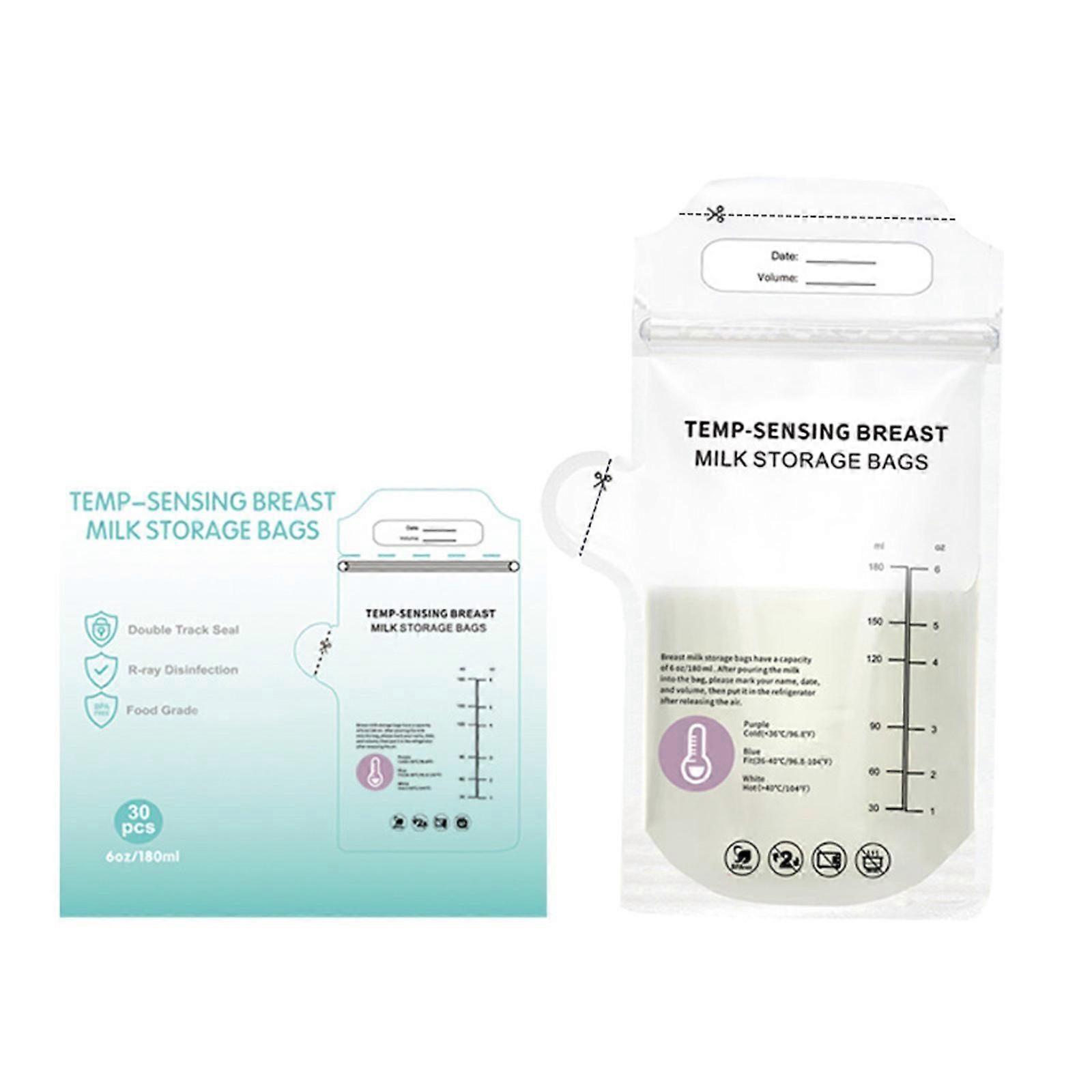 Set of 30pcs Breast Milk Storage Bags Double Seal Design Travel Organiser Bag 180ml Prevents Leaks and Spills Multicolor