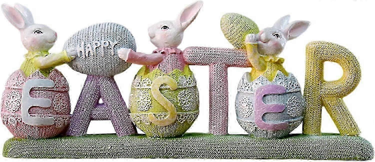 Easter Table Sign Bunny Decor - 3 Rabbits Eggs Table Signs Easter Decorations Cute Rabbit Egg Happy Easter Ornaments Party Table Decoration