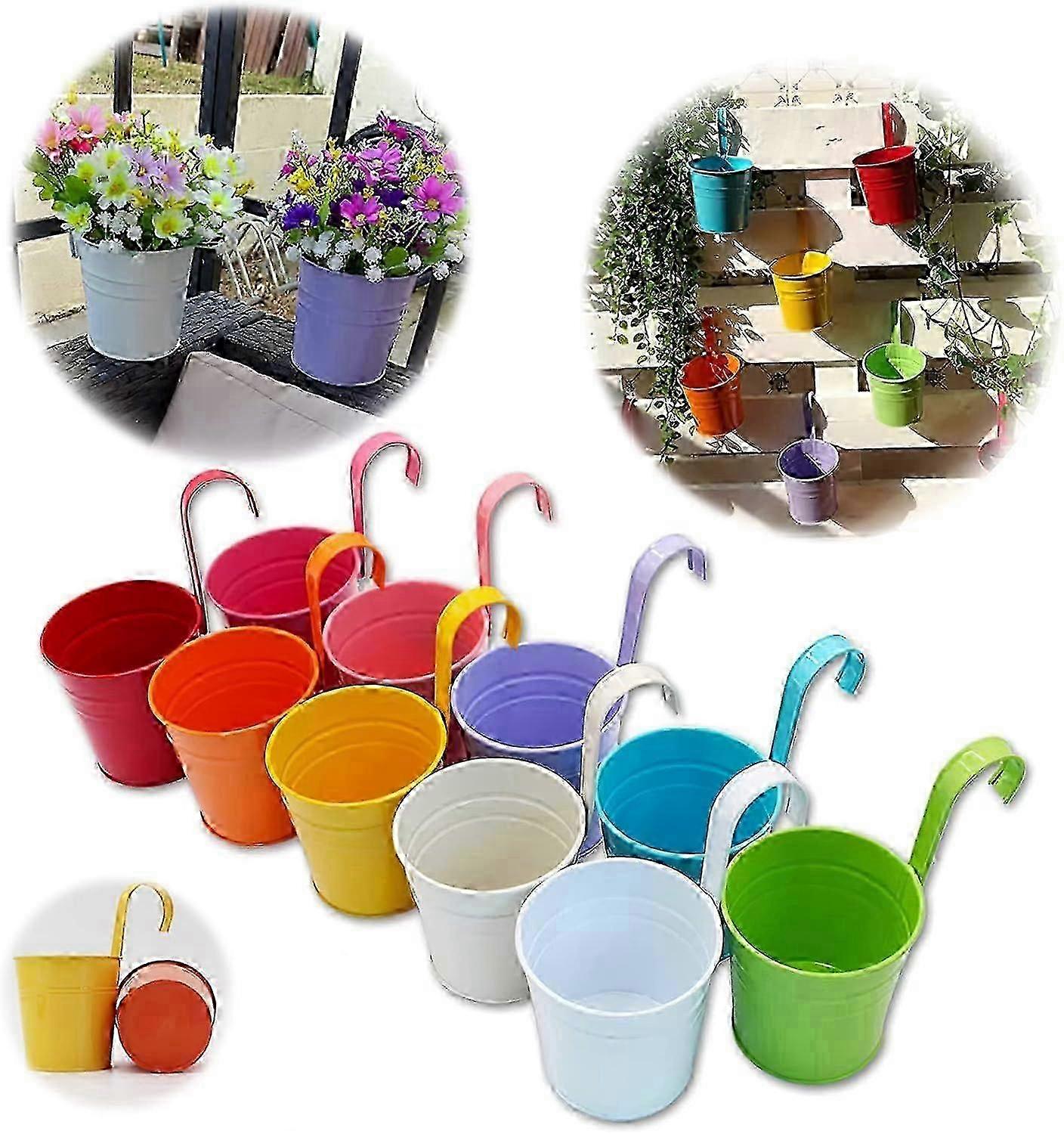 Set of 10 metal planting baskets for fence decoration with detachable hooks