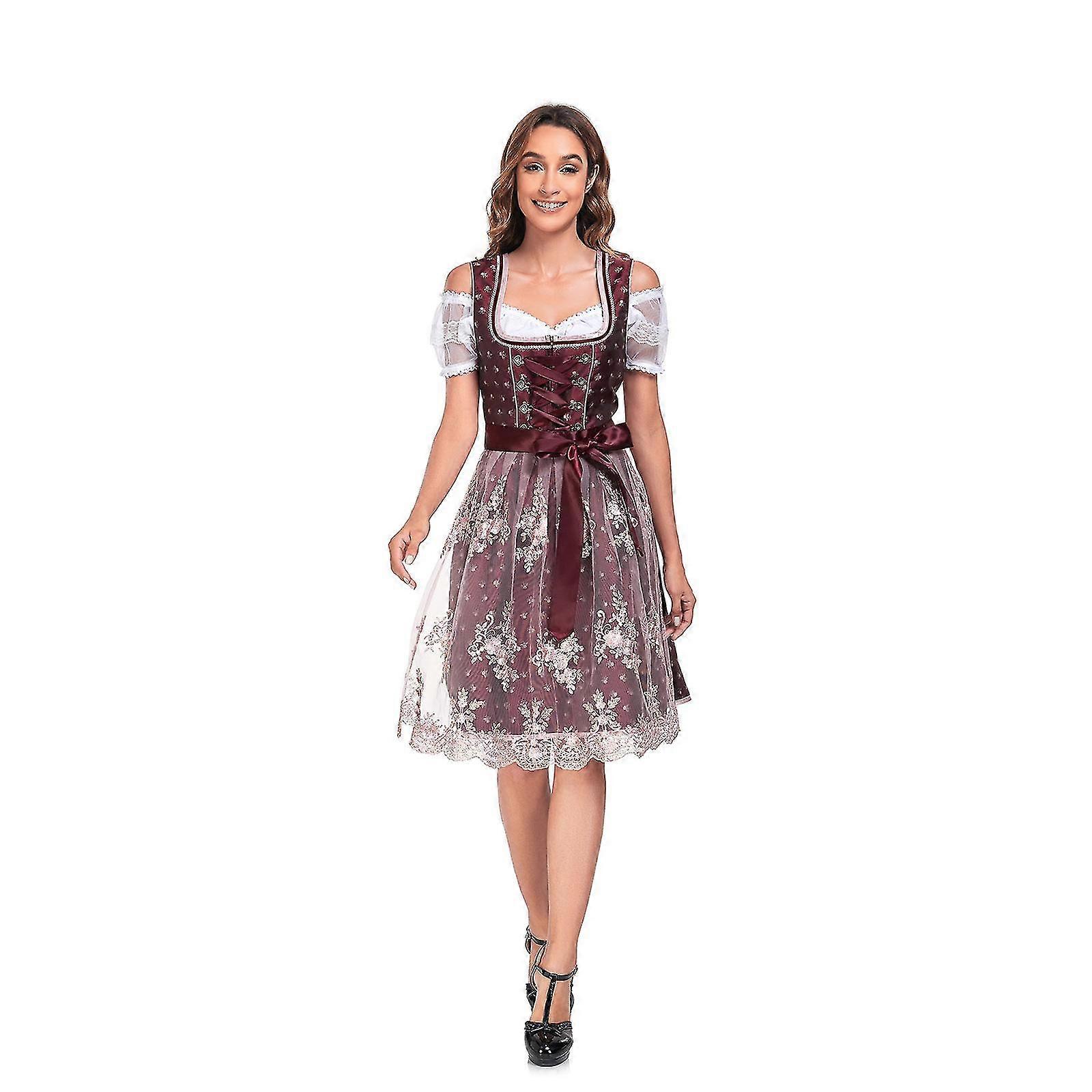 Red Women German Dirndl Dress Costumes For Bavarian Oktoberfest Halloween Carnival