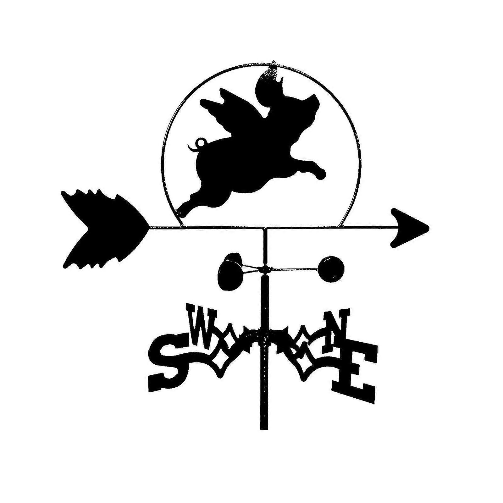 Stainless Steel Painted Pig Weathervane Ornament Patio Outdoor Iron Weathervane Flying Pig