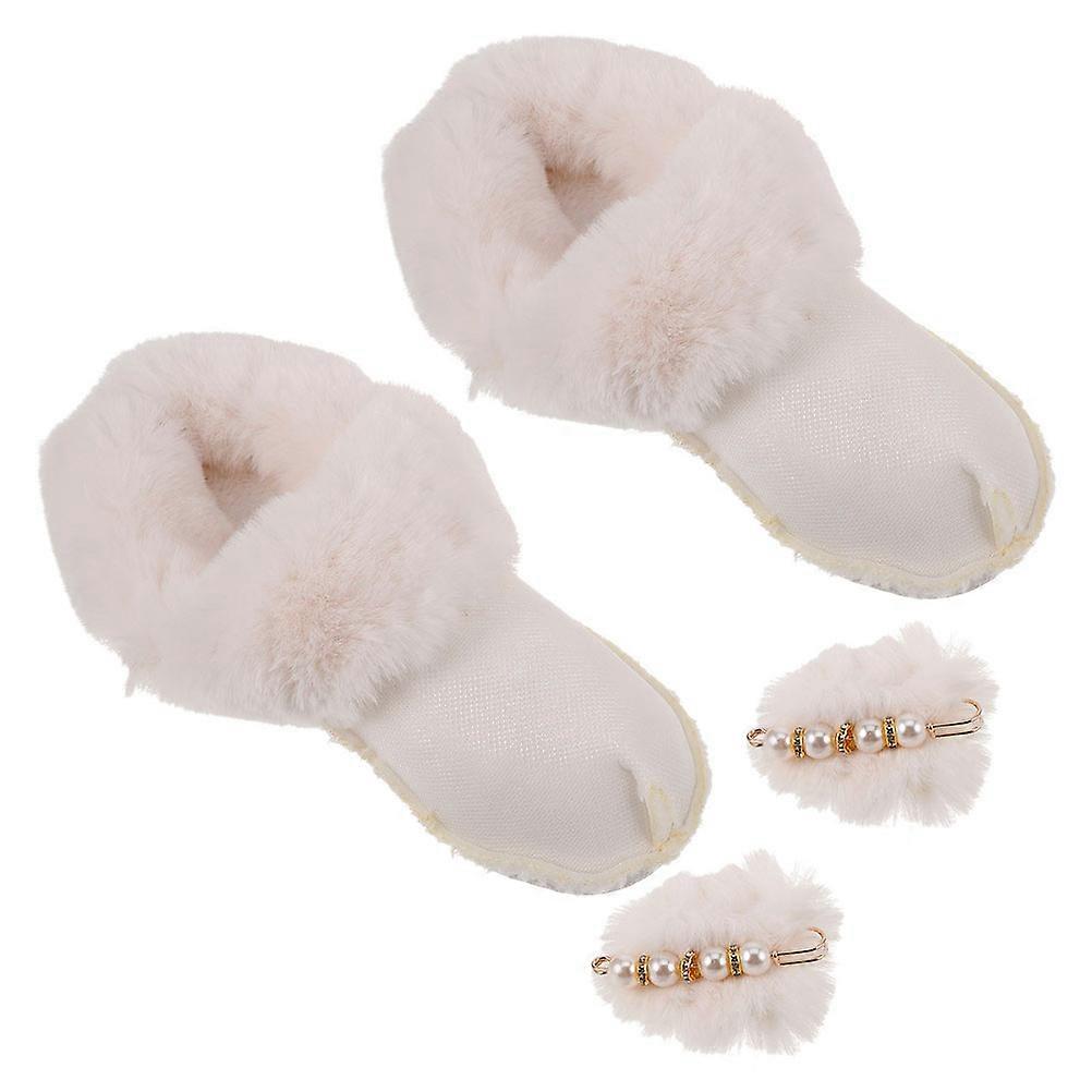 Cozy Furry Insoles Winter Snow Boots For Indoor Hiking Use White Size 38-39 Windproof 2Pairs