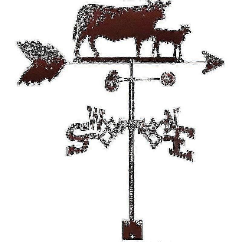Metal Weathervane Wind Wheel Garden Stake With Cow Silhouette Ornament