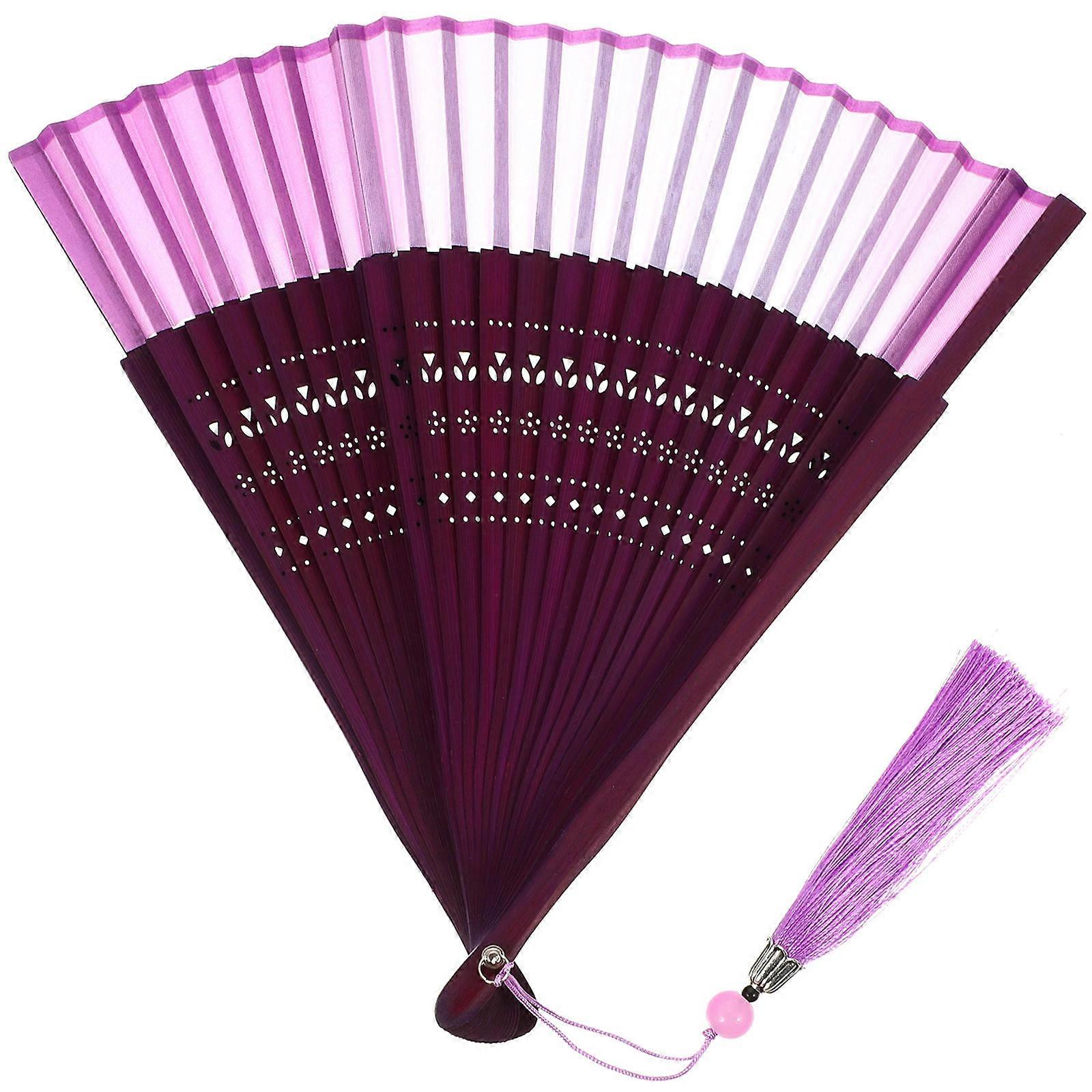 The folding fan is very useful. In addition to the basic functions of the fan, this fan is also able to be used for wall decoration and wedding parties ornament. At the same time, the fan is also the best gift for friends and family. Features - Color: Purple -Material:Bamboo, cloth - Size: 37.50X21.50X1.50cm/14.74X8.45X0.59in -Manufactured with reliable material, the fan is durable and practical for a long time of use. -The folding fan is lightweight and portable, easy to carry around with you, and easy to be folded and unfolded. -The handheld fan not only gives you a good breeze on the hot summer days but also can be used as party or cosplay accessory, dancer handheld prop, etc. -It has a wide range of uses, suitable for dancing, photography props, party, wedding, summer travel, etc. -Designed with delicate workmanship, the Chinese folding fan has is and vintage, very decorative. Package list: 2 x Chinese folding fan