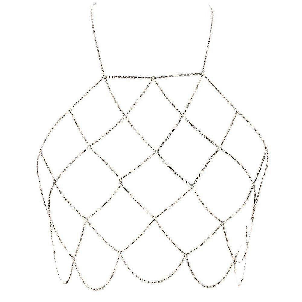 Women's Halterneck Mesh Body Chain Bralette Bikini Bra Necklaces Stomachersgold