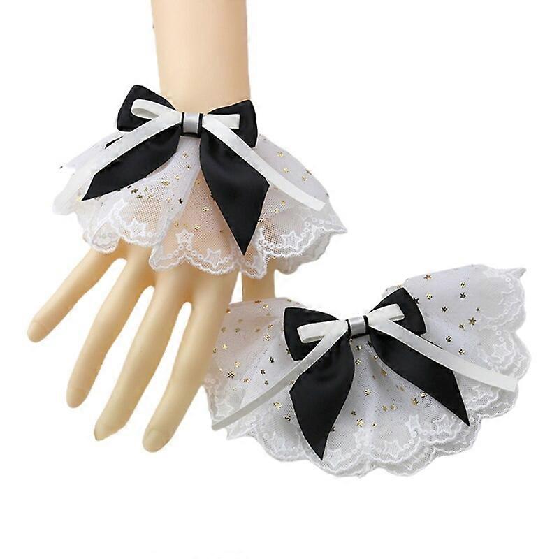 Women Lolita Hand Sleeve Wrist Cuffs Ruffled Lace Bowknot Maid Cosplay Bracelet