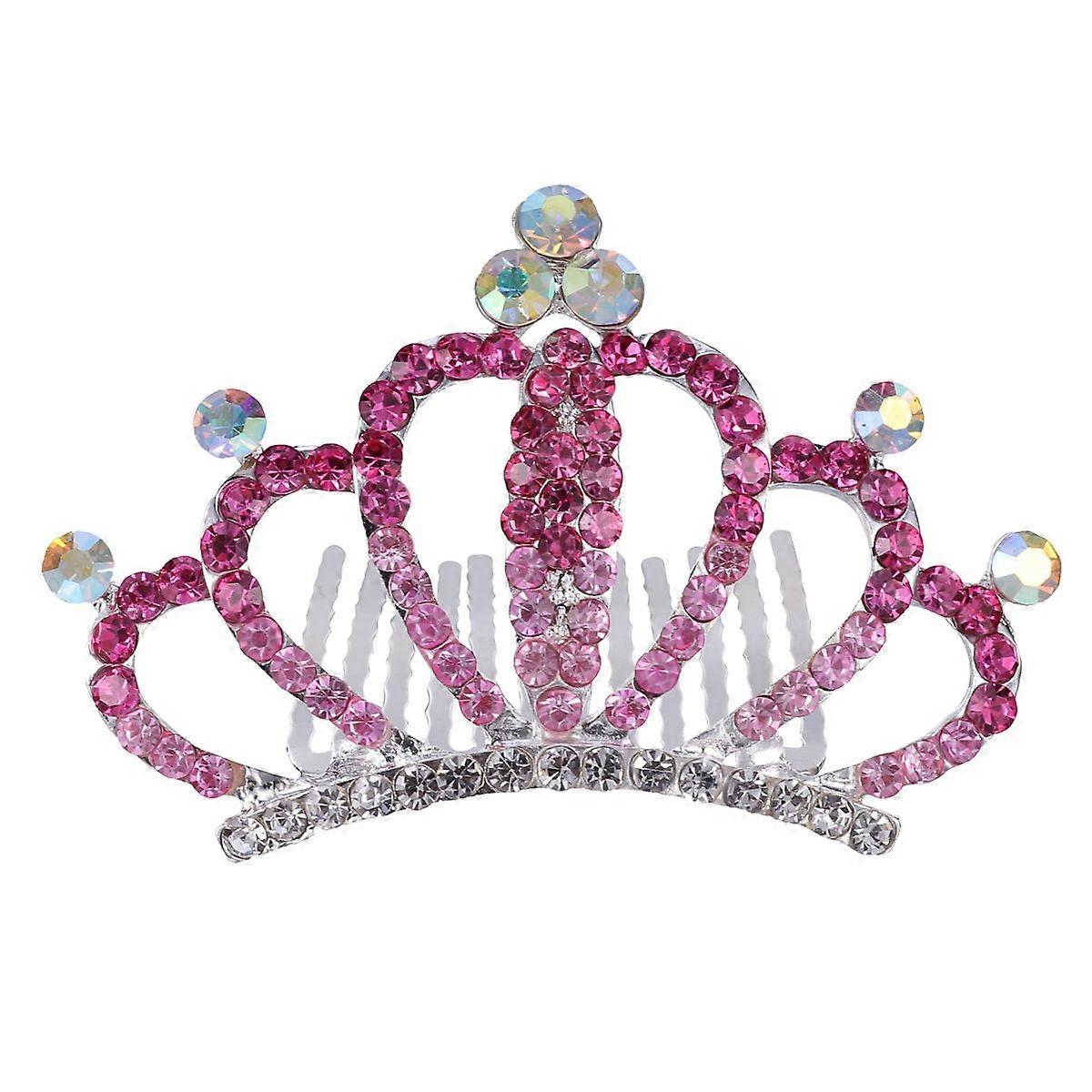 Girls Crown Crystal Tiara Comb Headdress for Decoration 3Pcs Pink