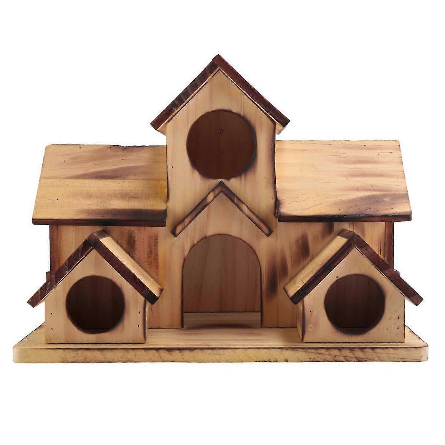 Hanging Wooden Bird House for Outside 6 Hole Wooden Bird House Courtyard Backyard Decorations