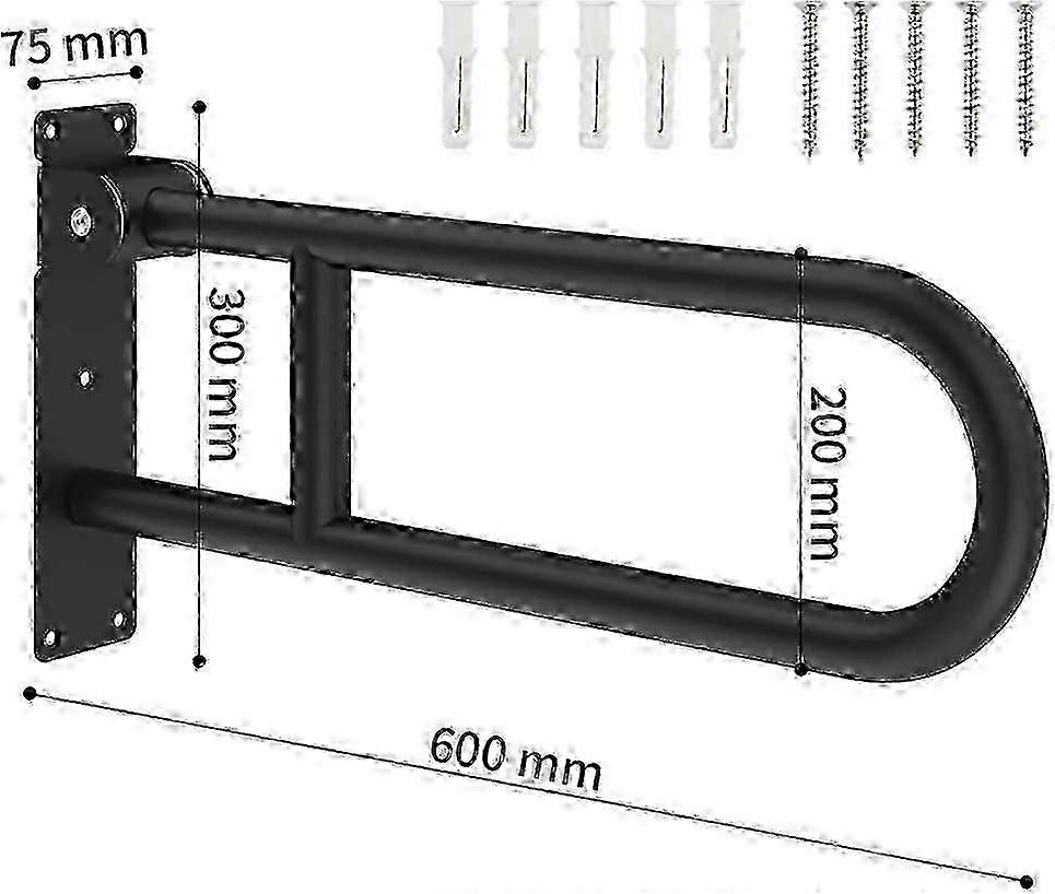 Foldable toilet grab bar for bathroom, U-shaped, wall-mounted, matte black, 60cm 2025