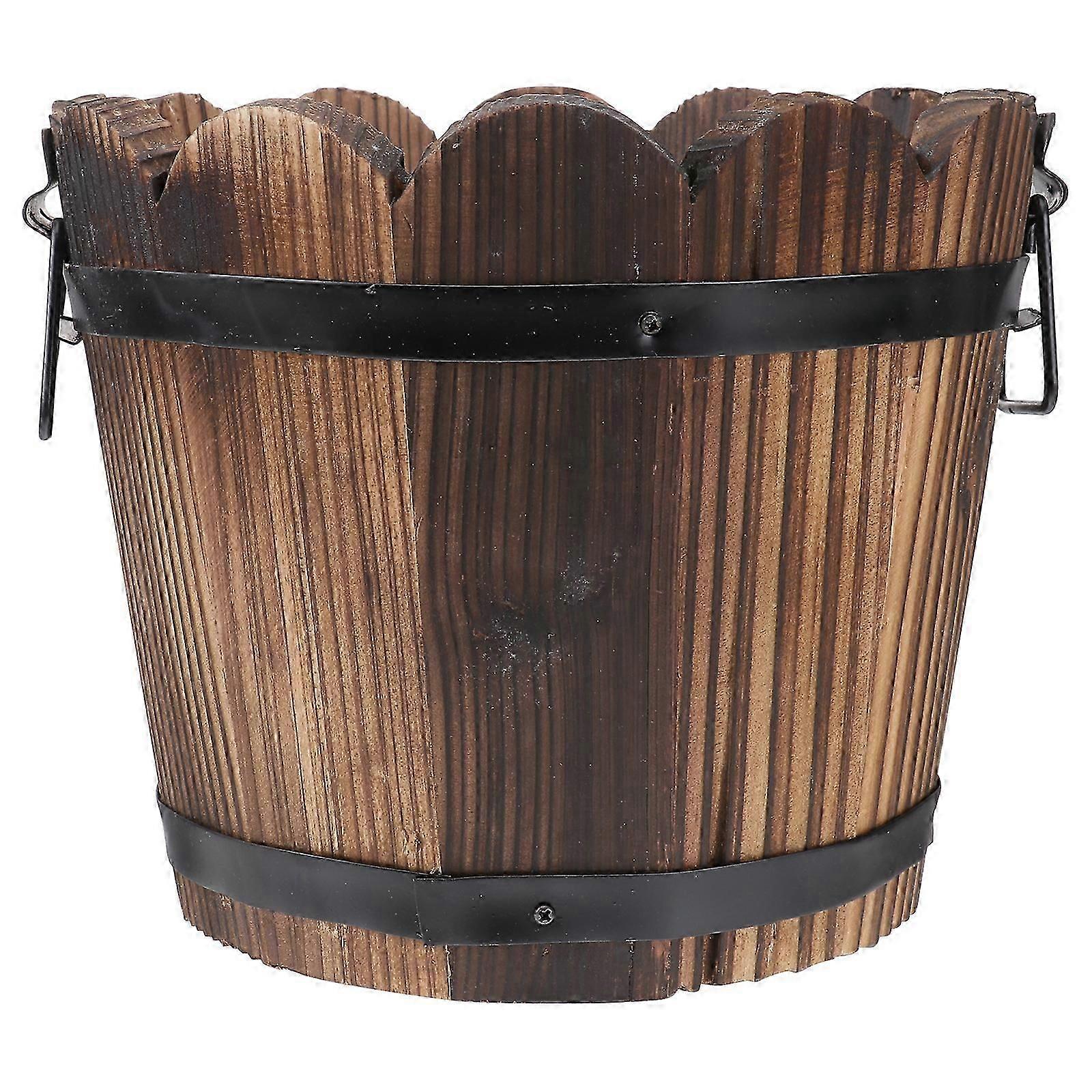 Solid Wood Carbonized Fleshy Flower Pot Balcony Planting Preservative Flower Holder Home Decoration Retro Wooden Small Barrel Wave Mouth Large Size (B