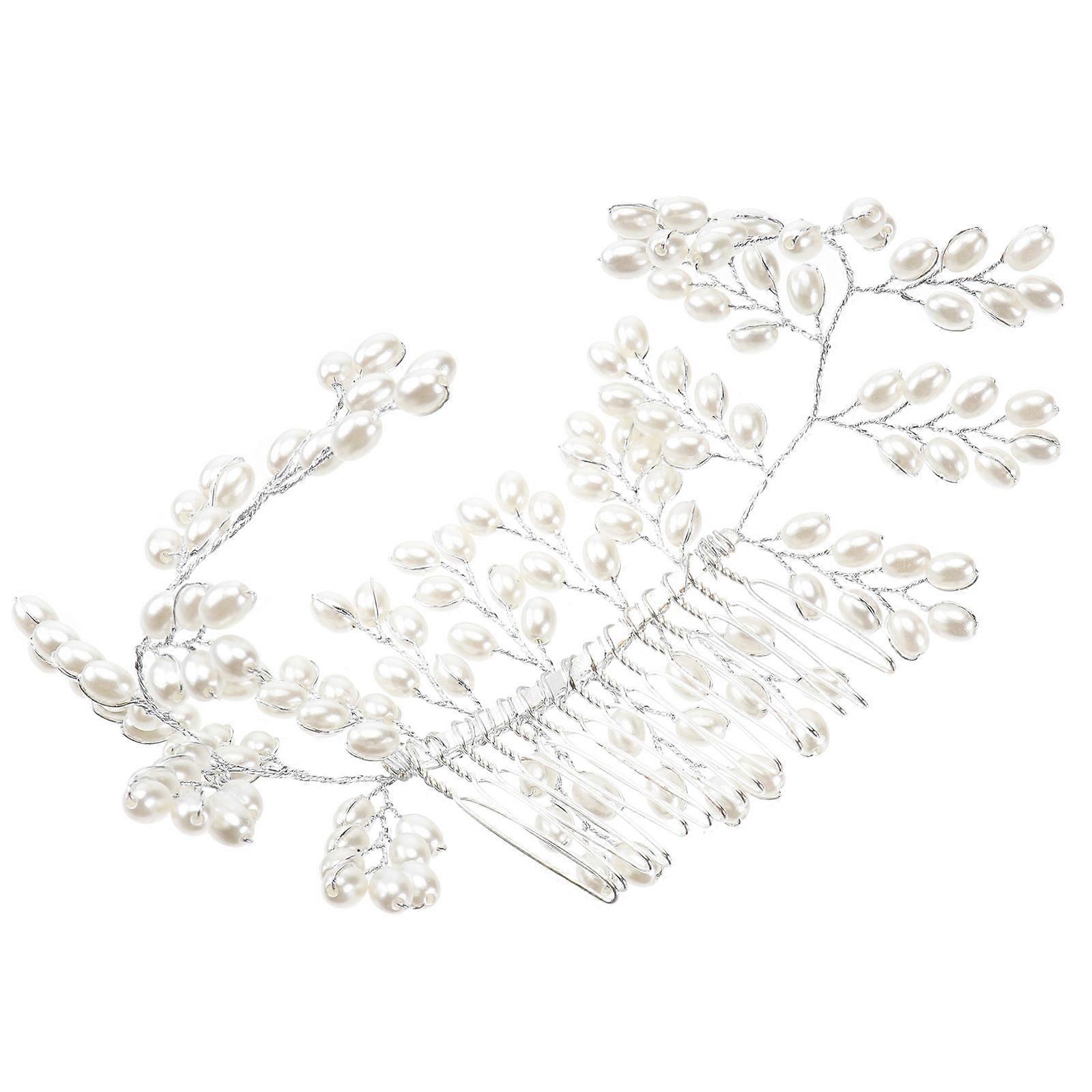 White Alloy Bridal Hair Comb with Pearls and Flowers for Wedding 24 x 8 cm