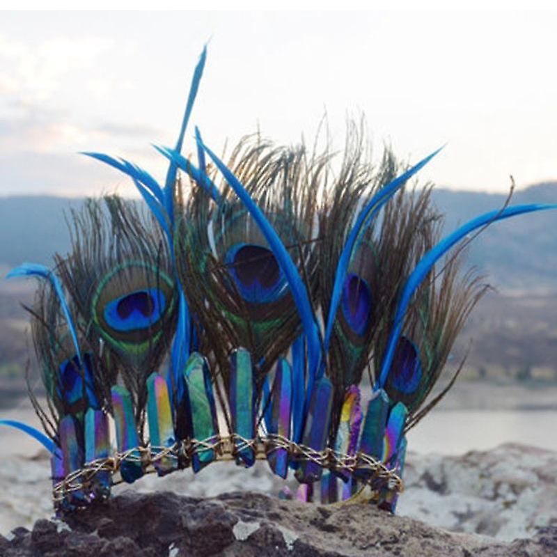 Indian Crystal Headband Peacock Feather Headband Tiara Crown Wiccan Costume Party Photography Headpi