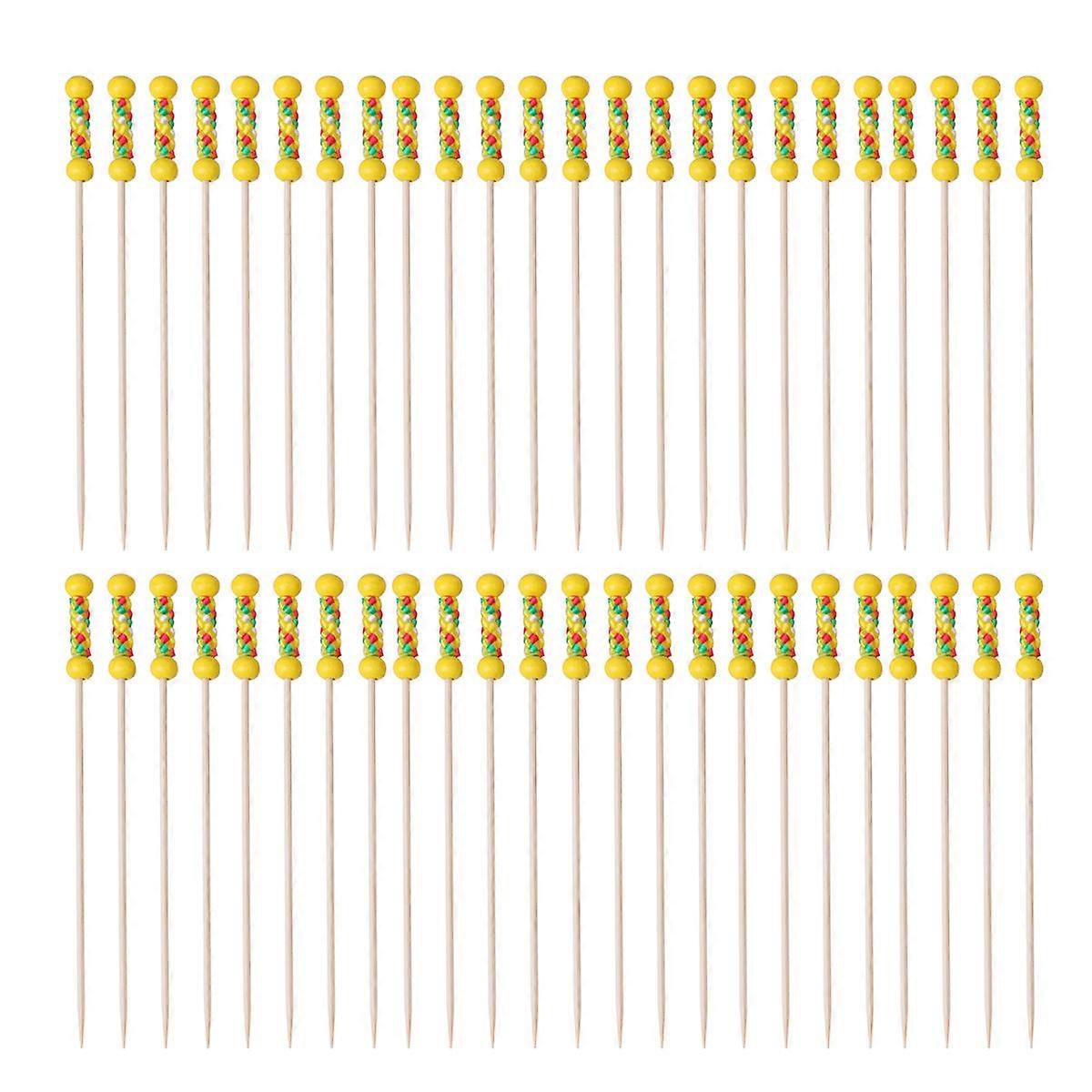 Disposable Fruit Decoration Picks Bamboo Cheese Toothpick for Birthday Party Home Use 12x0.5x0.5cm Yellow Appetizer Toothpicks 100Pcs