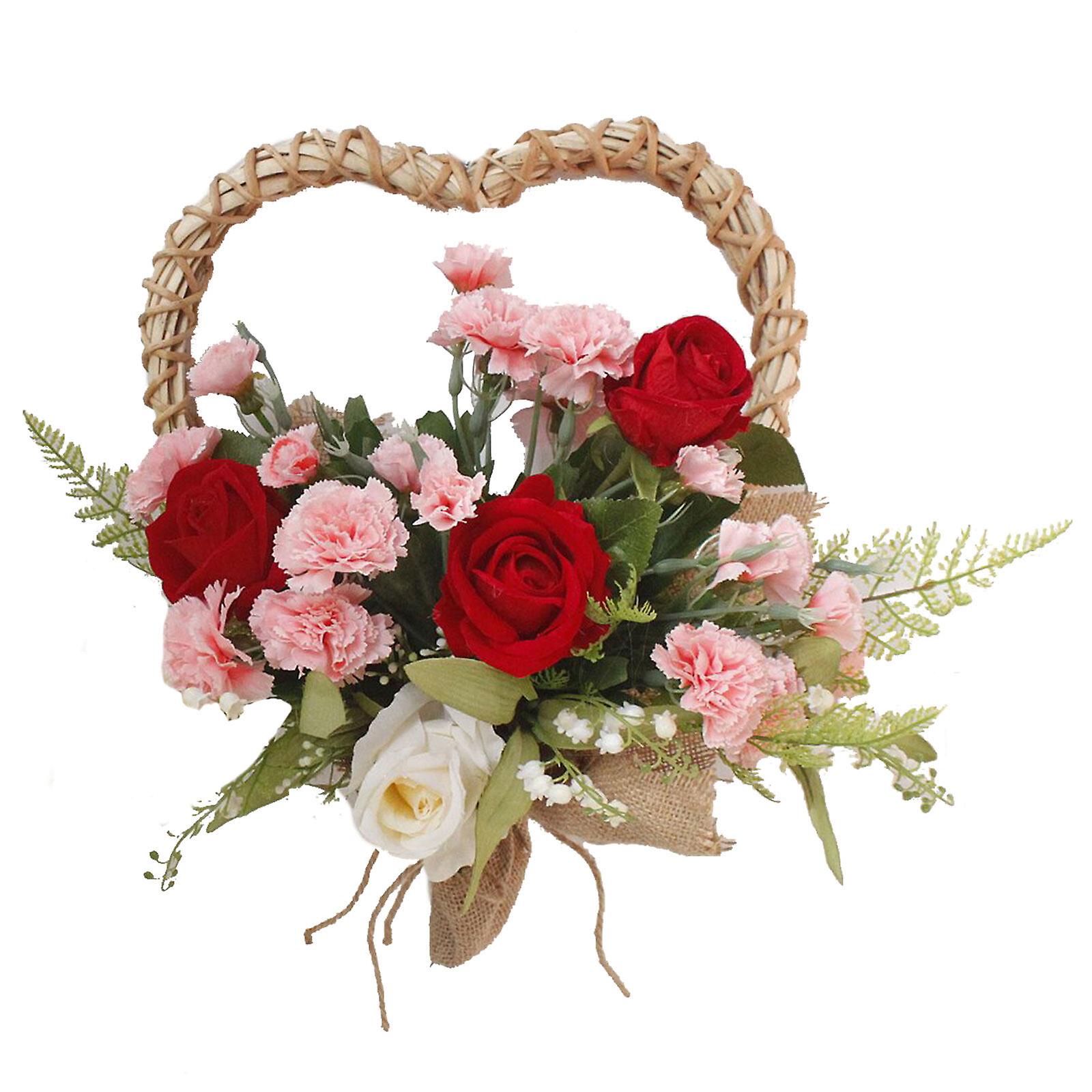 Rose Flower Wreath Heart Shape Twig Wreath With Greenery For Home Wedding Arch Decor