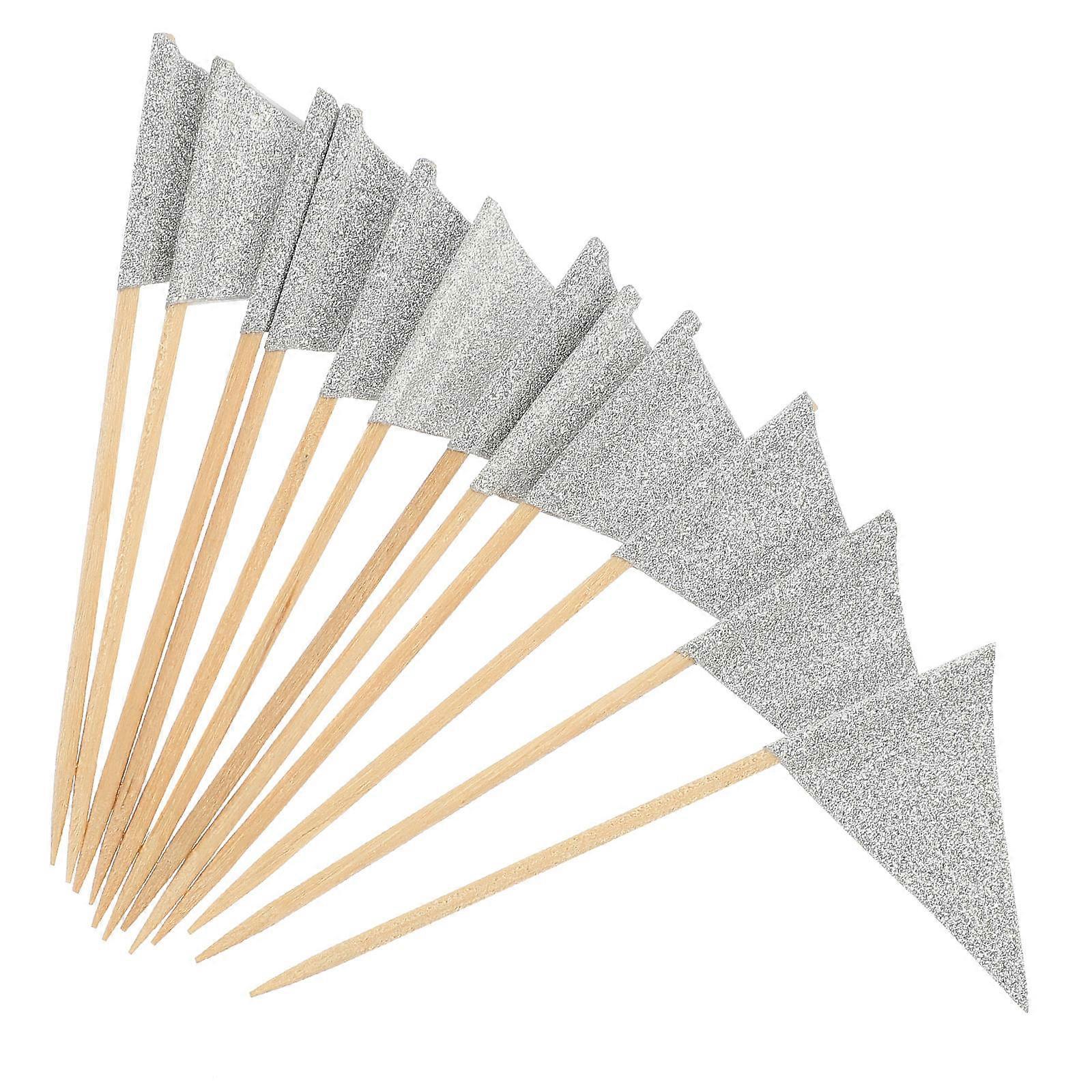 Silver Paper Food Flags for Decor Creative Cake Flag Decorations Perfect Party Supplies 12Pcs