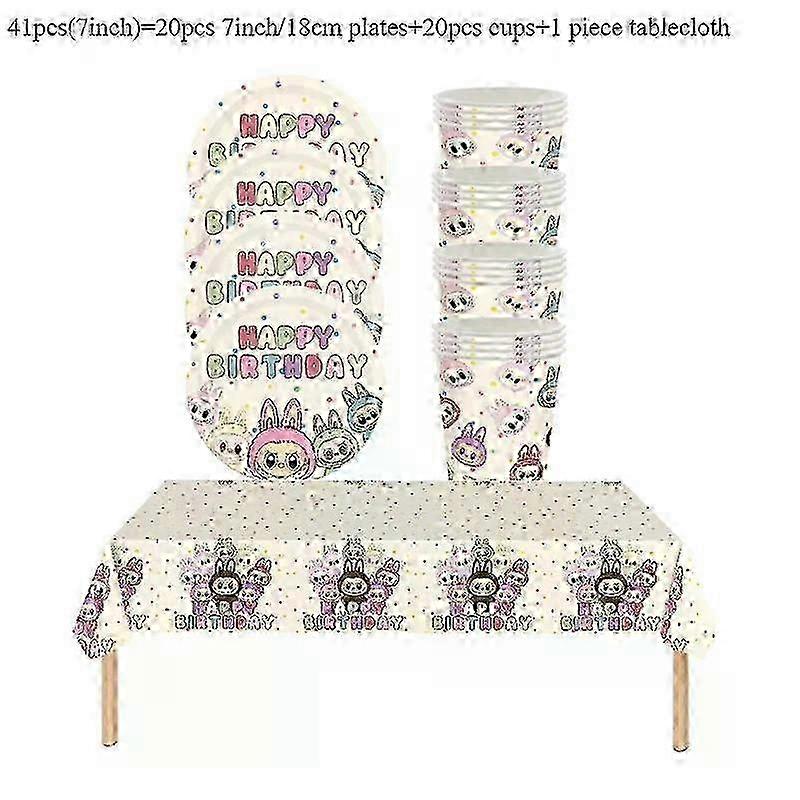 Decorations MINISO Cartoon Labu Party Tableware Children's Birthday Party Supplies Paper Plate Flag Decoration Set