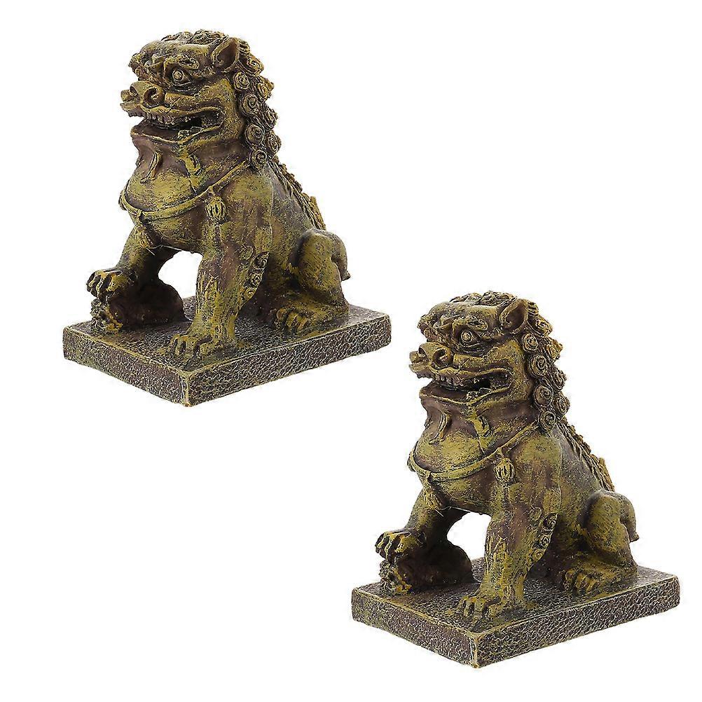 Chinese Guardian Lion Aquarium Ornaments Resin Crafts for Decoration 2Pcs