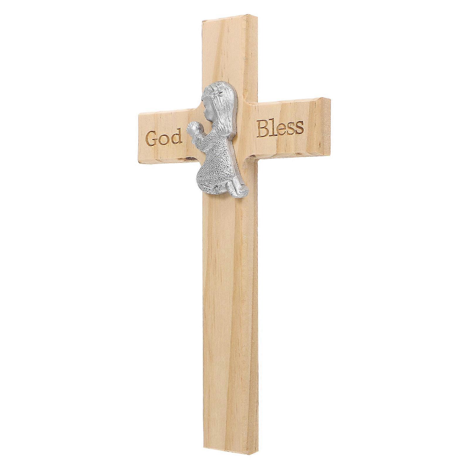 Cross Wooden Craft Kneel Sitting for Home Decor 1Pcs