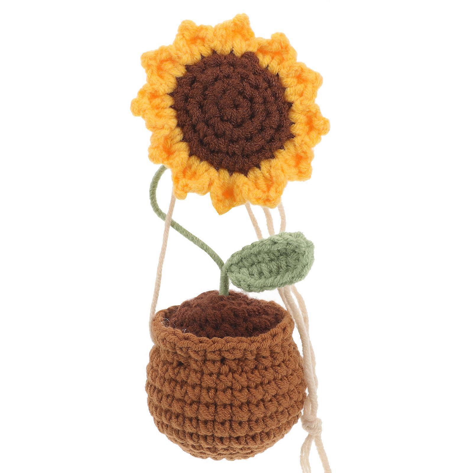 Crochet Sunflower Hanging Ornament Knitted Potted Sunflower Hanging Decoration for Car