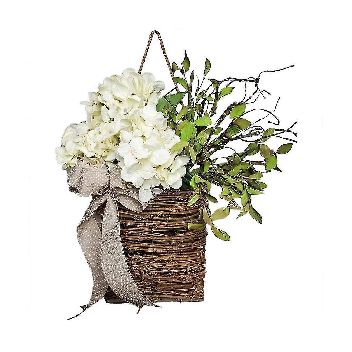 Cream Hydrangea Door Hanger Basket Wreath,wildflowers Door Hanging Basket Wreath, Home Porch Farmho
