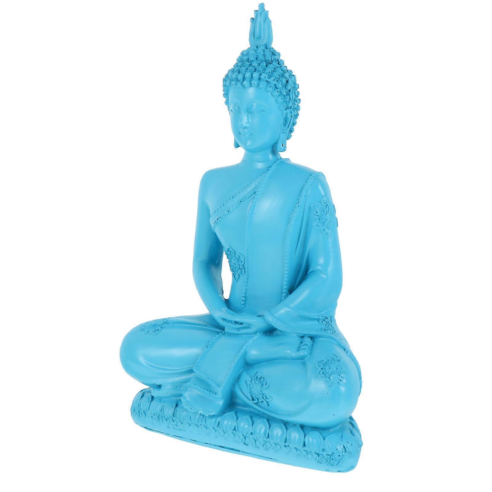 Blue Resin Buddha Statue Thailand Buddha Ornament for Decor 2Pcs Figurines