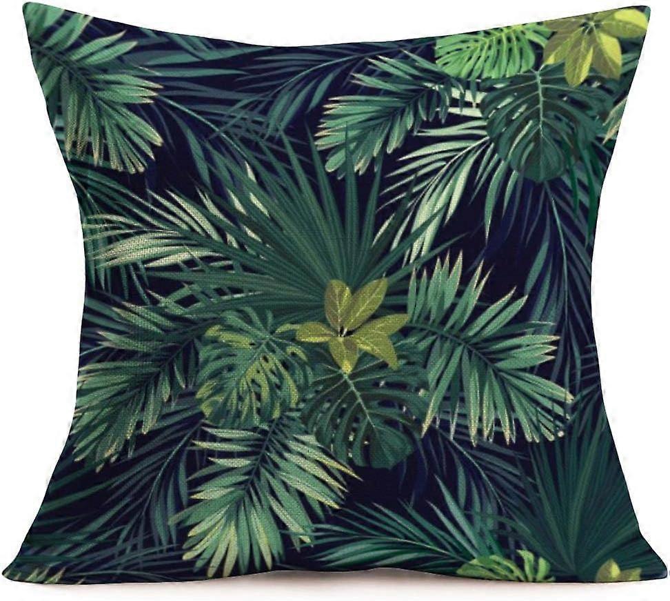 Palm Pillow Case, Summer Exotic Jungle Plant Tropical Palm Leaves Banana Leaves Cotton Linen Cushion Cover Square Home Decorative Throw Pillow Case Wh