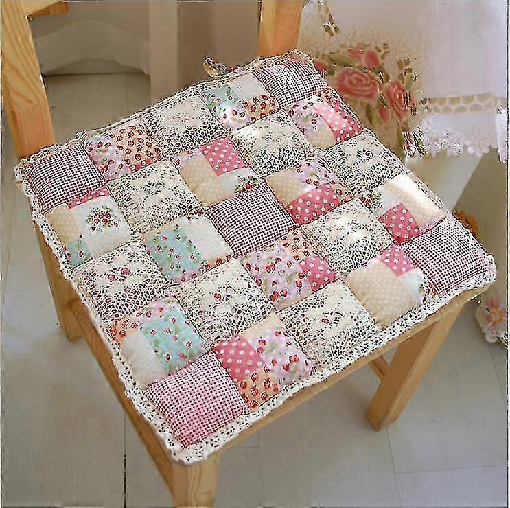Patchwork Chair Pad With Ties No Slip Lace Trim Chair Cushion Kitchen Dining Seat Cushion