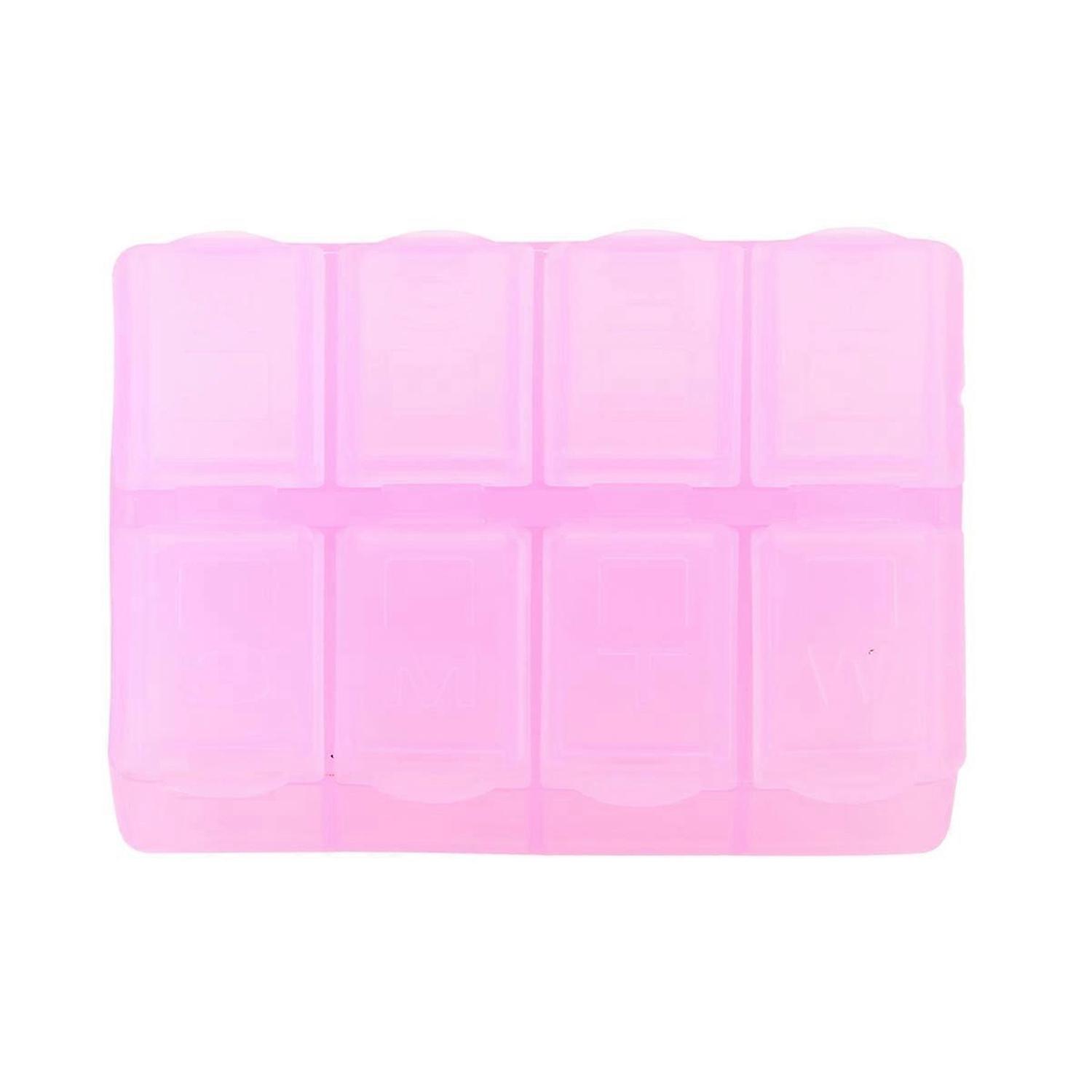Plastic Rectangle 8 Compartments Medicine Pill Box Pink