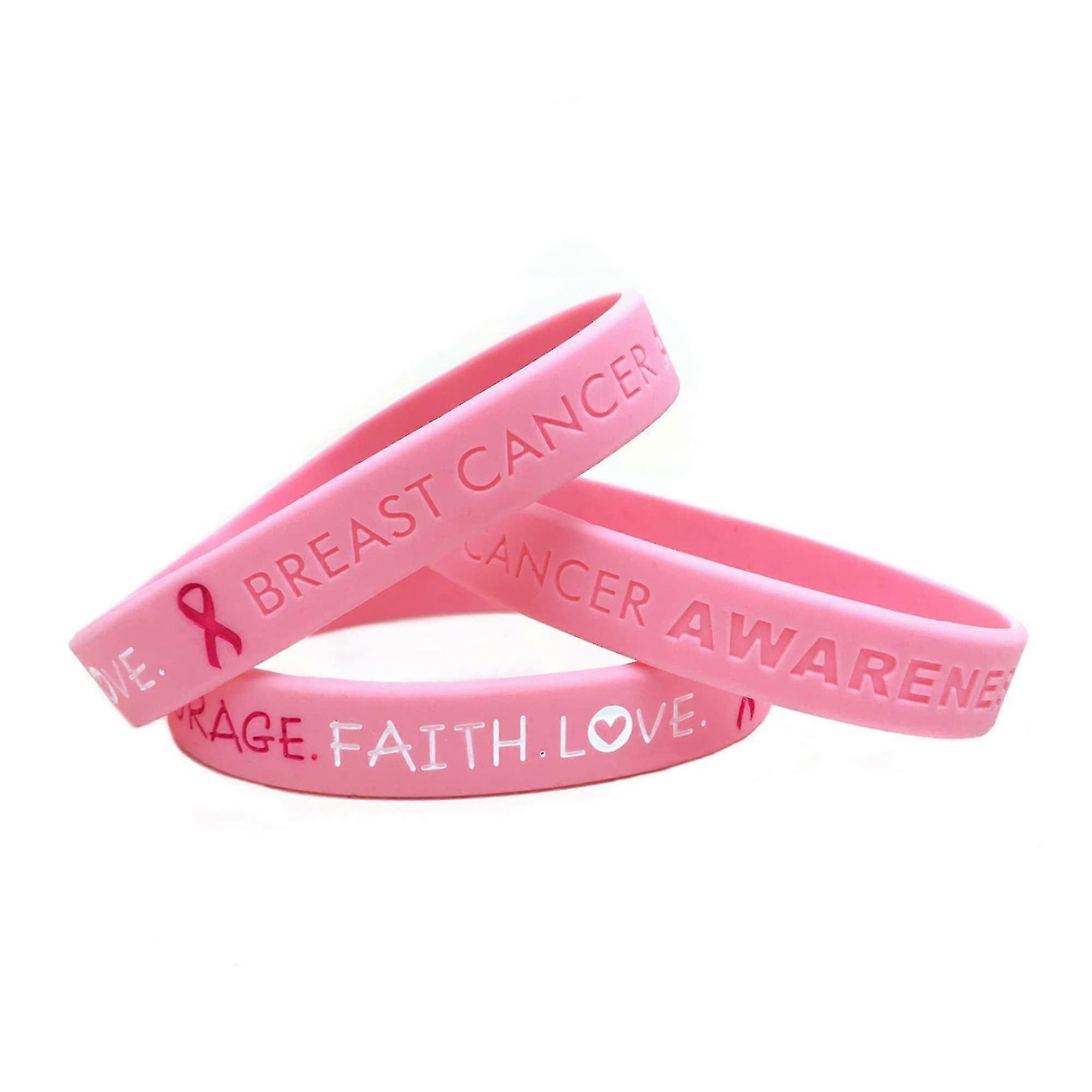 Pink Breast Cancer Awareness Wristband. Hope Courage Faith Love Ladies Women's Bracelet Silicone Band