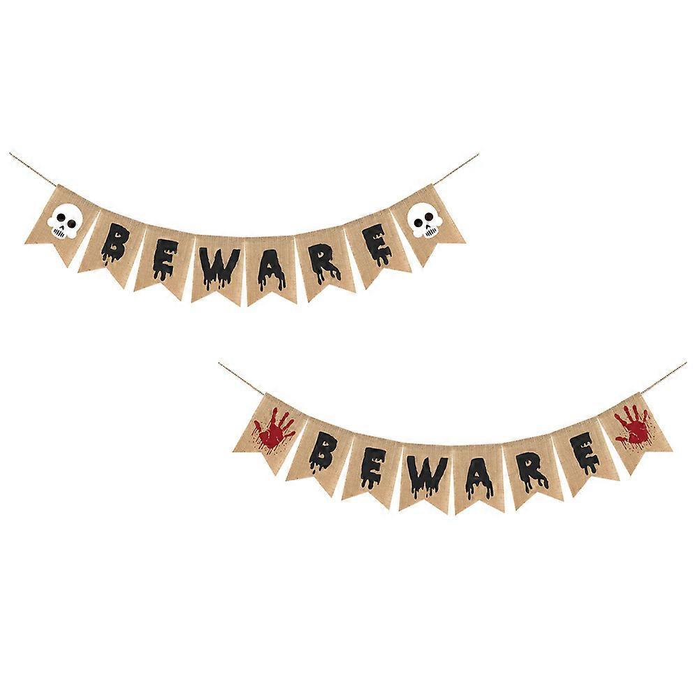 Halloween Decorative Beware Banner Burlap for Decoration 8Pcs Garland