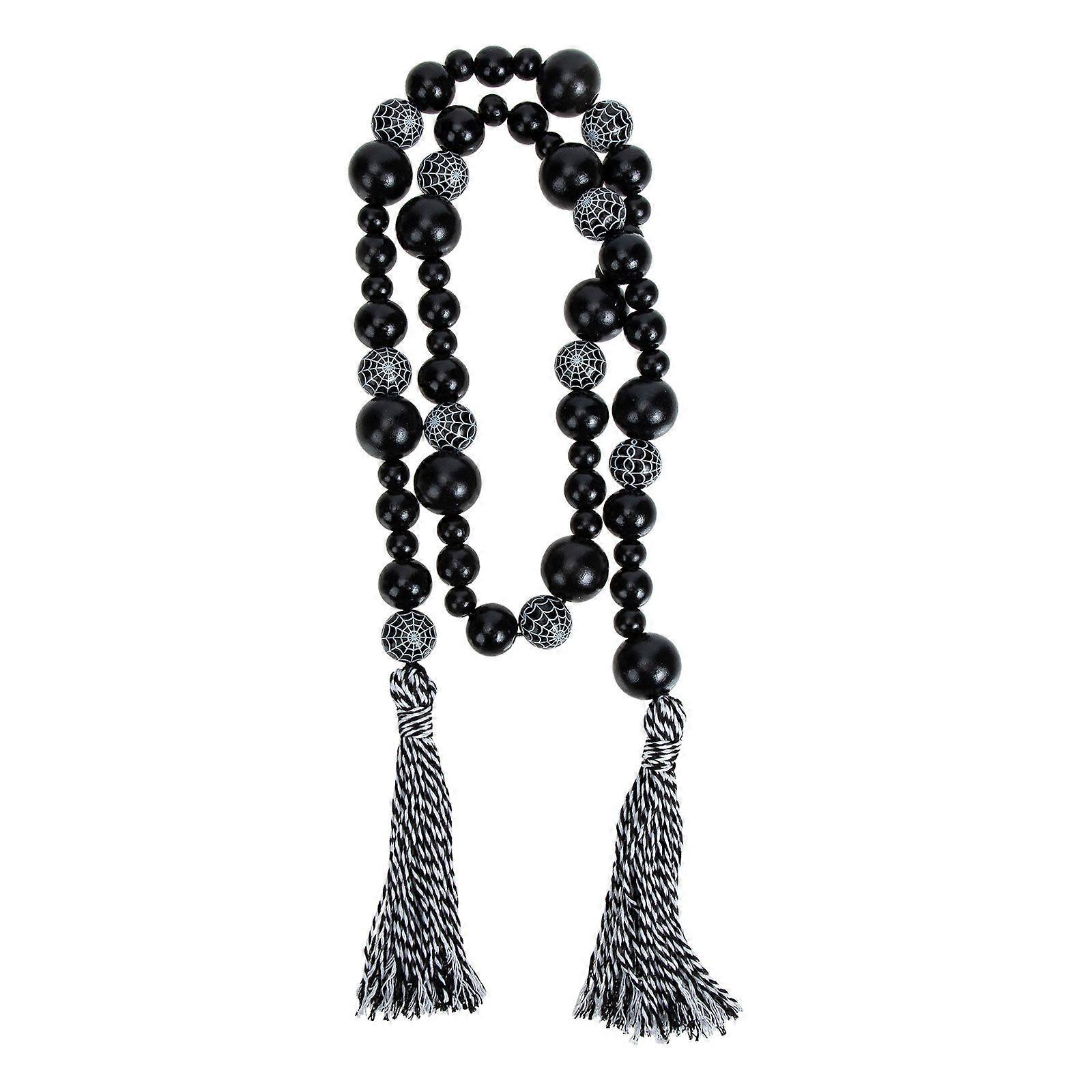 Halloween Beaded String Decor Beads String Ornament Wood Beads String with Tassel