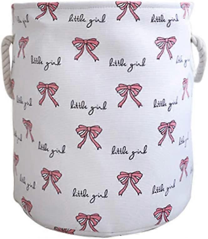 [dimensions] - 35 x 40 cm / 13.7 (d) x 15.7 (h) inches, large capacity, ideal for storing toys, laundry, baby clothes, blankets, books, etc. [High Quality Material] - Made from thickened and durable EVA cotton canvas with polyester lining; Natural and eco-friendly dyes, safe for your children. [Easy to Carry] - The lightweight fabric laundry basket is equipped with a reinforced handle for easy carrying of clothes. Foldable when not in use for easy storage. [Stylish storage] - unique storage basket with pink bow/lace decoration, Very cute design for kids, especially little girls , decorative storage box for kids room organizers. [Multi - purpose] - you can use our storage basket as a toy organizer, baby basket, laundry box or even as a basket decorative. Keep everything tidy and beautiful in any room. [package contains] laundry basket*1
