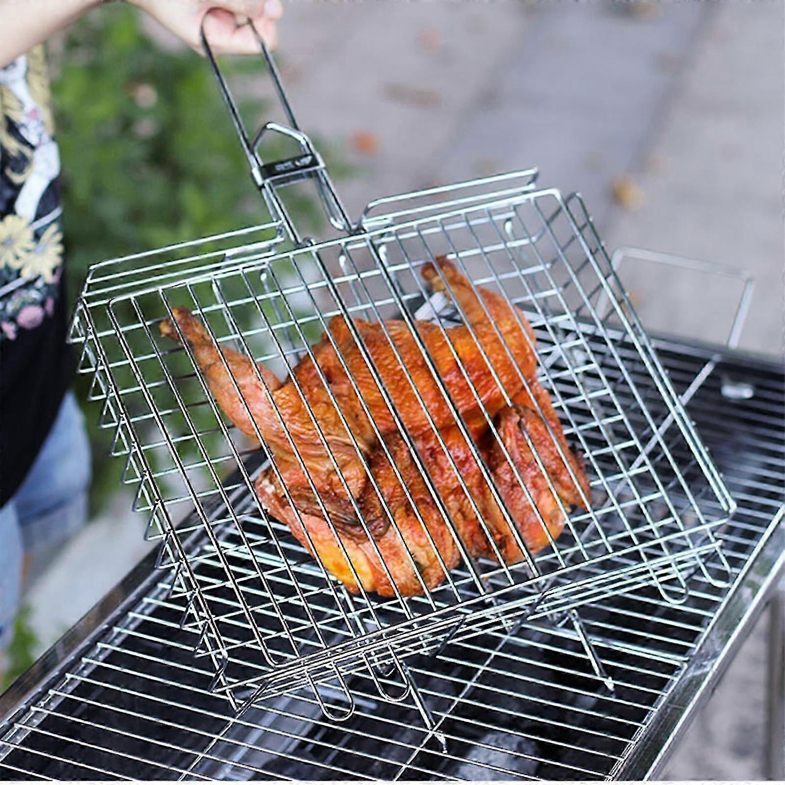 Portable Bbq Grill Basket, Stainless Steel Fish Grill Basket With Removable Handle, Perfect For Grilling Steak, Salmon, Vegetables