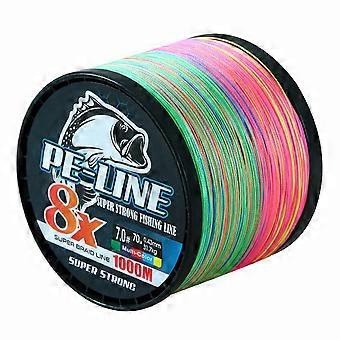 8-säikeinen 1000 m kudottu PE-siima kulutusta kestävä heittoviehenauha, väri vaihtuu 10 metrin välein siima nro 1.0