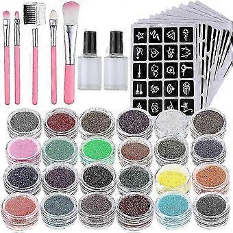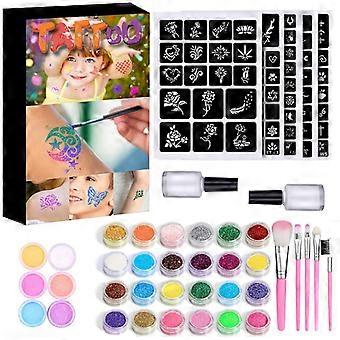 반짝이 문신 세트, 반짝이 튜브, 스텐실, 접착제 및 임시 문신용 브러시가 있는 키트
