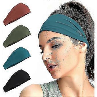 스포츠 달리기 여성을 위한 운동 머리띠 - 와이드 스웨트 밴드 요가 체육관 액세서리 탄성 헤드 밴드 스웨트밴드 4팩