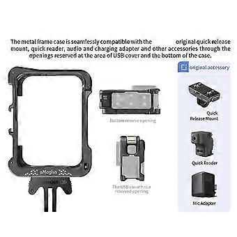 Toimintakamerahäkki alumiiniseoksesta valmistettu pikalukitus suojakameran kotelon kehys, jossa on kaksi kylmäkenkäliitäntää Osmo Action 4: lle 3