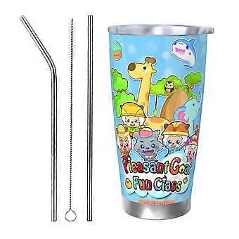 카툰 스티치 20온스 스테인리스 스틸 텀블러, 빨대와 뚜껑이 있는 누수 방지, 따뜻한/차가운 음료용 여행용 커피 머그