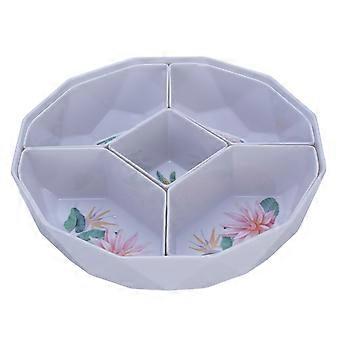 Välipalan tarjoilualusta 5 lokero pyöreä muovinen järjestäjä 1570g