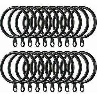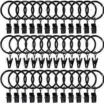 커튼 및 봉용 금속 커튼 링, 내경 38mm, 블랙 색상 60개 세트.