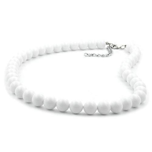 sommerliches Collier mit 10mm Kunststoffperlen weiß-glänzend, Verschluss silberfarbig mit Verlängerungskettchen und kleiner Perle als Abschluss, in Deutschland gefertigte Handarbeit Länge: 40cm Material: Kunststoff Farbe: weiß Preis per 1 Stck
