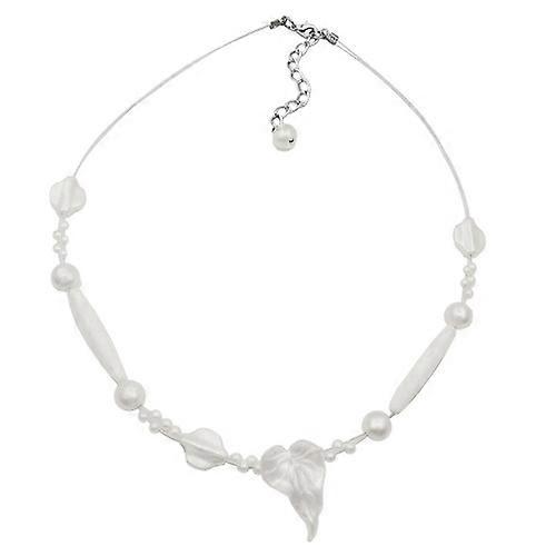 Kette Drahtkette Blatt wachsweiß Kunststoffperlen 42cm